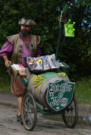 I found this guy with a barrel full of pickles at the Great Lakes Medieval Festival. Holy shit. It was the best pickle ive ever eaten. Crunch, juice, sour, fresh. Oh my god. Praise the Pickle Pirate.