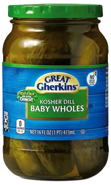 It has like a sweet n sour smell, like a bread & butter pickly smell. Maybe a relishy smell? It has a snap, but its a chewy pickle. Not a crunch, its a chew. Feint but powerful tang? You barely get it but it's a good kick. Also tastes kinda sweet? Kinda juicy. No garlic. I miss the garlic. Even though its sweet it's got a good sour, it's got a good tang, it's got a good snap. It has great pickle flavor, but also not super satisfying on its own. maybe 2-3 could satisfy a craving. Although I have ate an entire jar in one sitting before so maybe not.