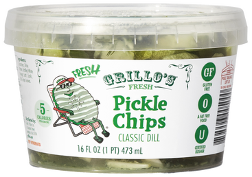 Smell incredibly vinegary, it is not good. Vinegary and a bit cumcumbery. I think its vinegar I smell? It's like a sour smell, but not like a pickle sour its like something hass gone bad. Its got a bit of a crunch, but like the structure of it it almost disolves in your mouth, and your mouth gets filled with just vinegar and dill, no real pickle taste. Bad. its extremely acidic. you can see the dill floating around. it very slightly hurts to eat thats how acidic it is. maybe its growing on me. dill tastes pretty planty, no cucumber flavor no pickle flavor. Slight hints of bitterness. If you are having pickle cravings I dont think these are gonna fill that for you. I am struggling to eat these, like my stomach is getting upset eating these. My dog doesnt like it. My stomach does not feel good after eating 3 pickle chips. Might be good on a grilled cheese?